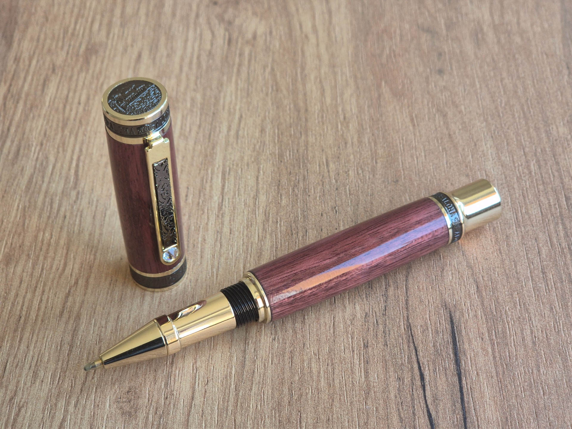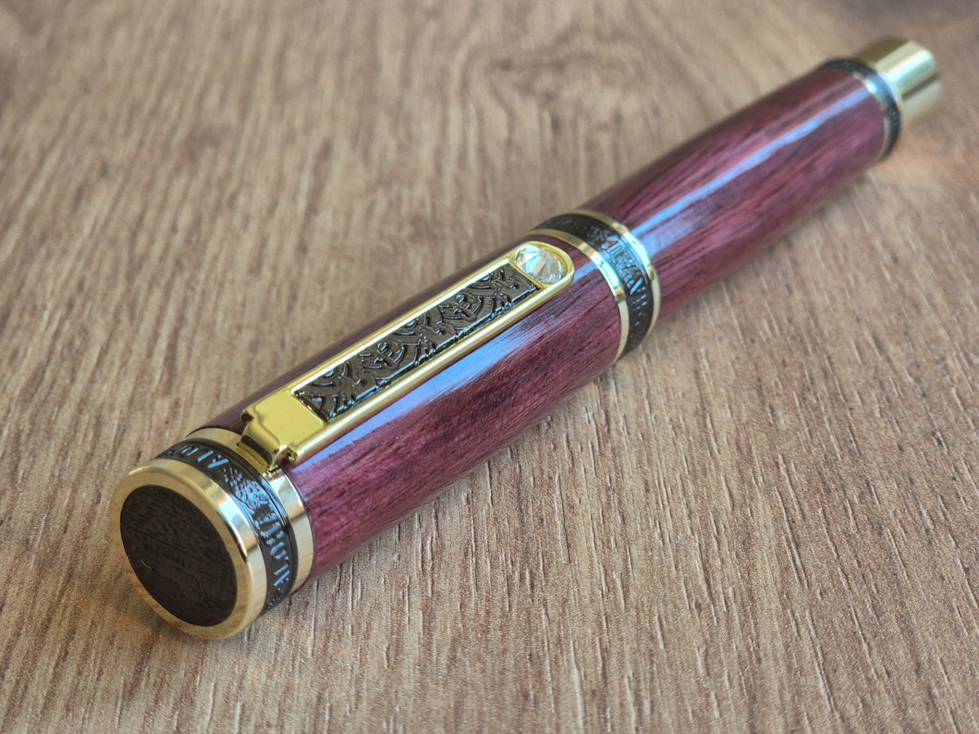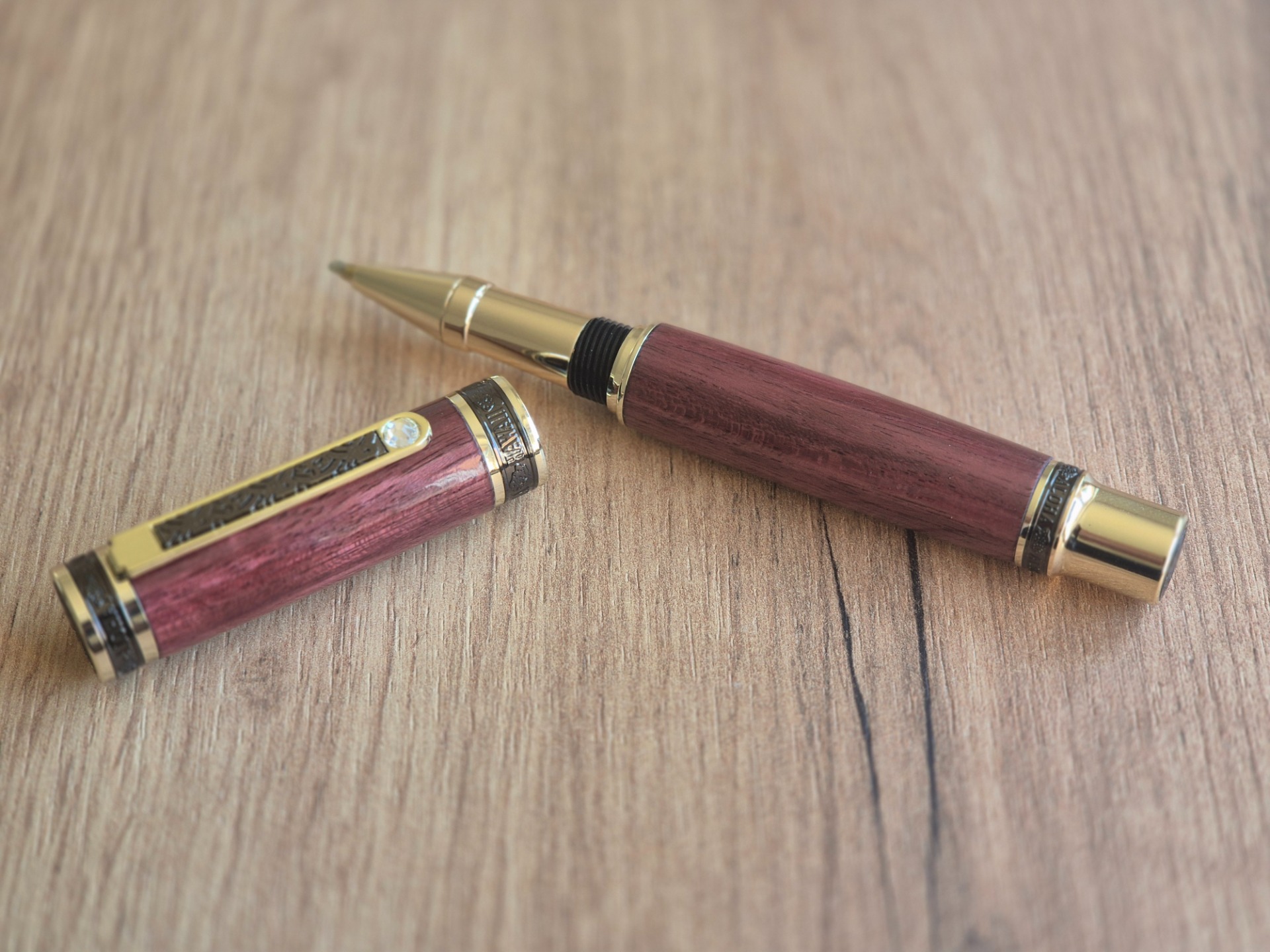 Objevte spojení výjimečného designu a precizního psaní v podobě tohoto luxusního kuličkového pera z exotického dřeva amaranth. Tento jedinečný materiál, známý svou sytě fialovou až purpurovou barvou, dodává peru nezaměnitelný a elegantní vzhled, který zaujme na první pohled.