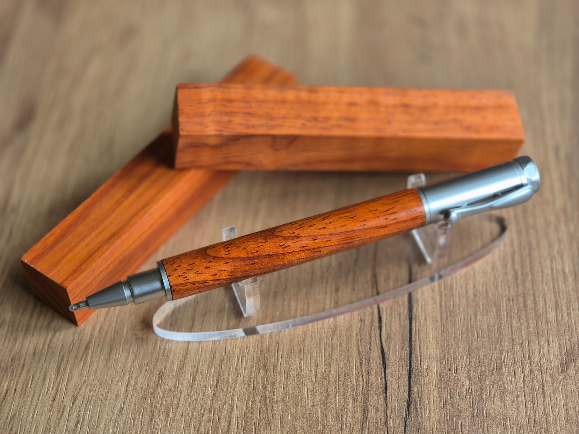 Pero Magnetic spojuje krásu exotického dřeva padouk s promyšlenou funkčností a luxusním zpracováním. Sytě červenooranžové odstíny padouku dodávají peru výrazný a elegantní vzhled, zatímco zlaté pokovení podtrhuje jeho exkluzivní charakter.